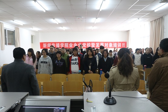 开班仪式在庄重的国歌声中拉开了帷幕,学院副书记马骏首先就培训的内容、要求,结业及考核方法等相关方面做了说明。她强调入党积极分子应注重理论与实践的结合,通过党校培训了解党的性质、宗旨、任务、明确入党的必备条件。2016级新闻学专业孙亚娇和2015级新闻学(网络与新媒体方向)专业丁建华分别代表入党积极分子和发展对象发言,孙亚娇说:“只有端正入党动机,才能直面曲折,朝既定目标不断前进。”他们表示作为一名青年大学生要有时代使命感,要努力学习,全面发展自我。