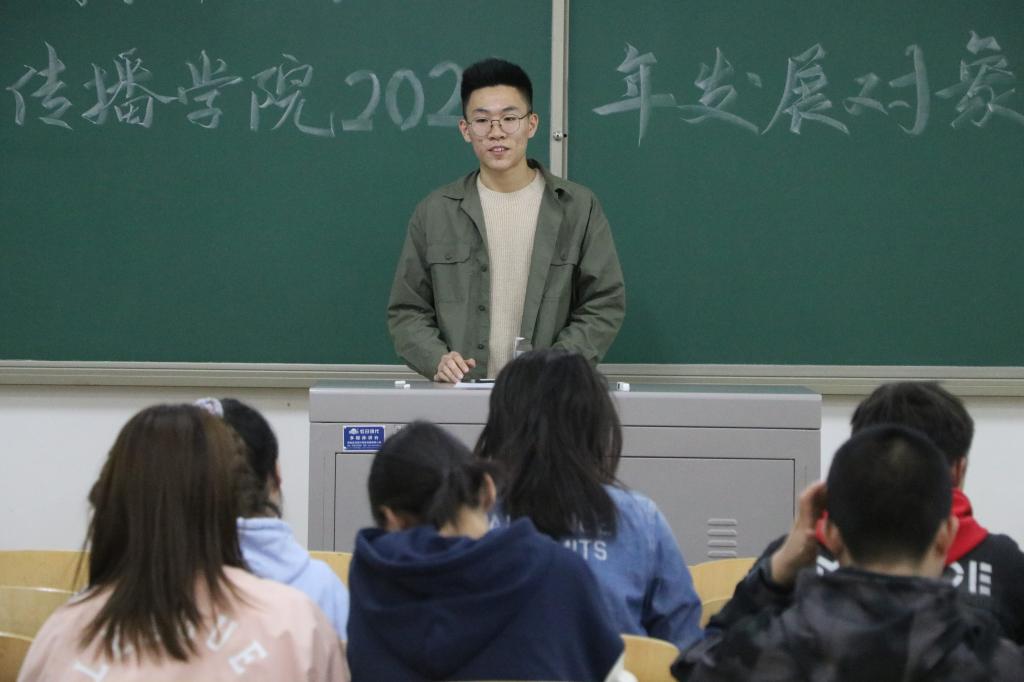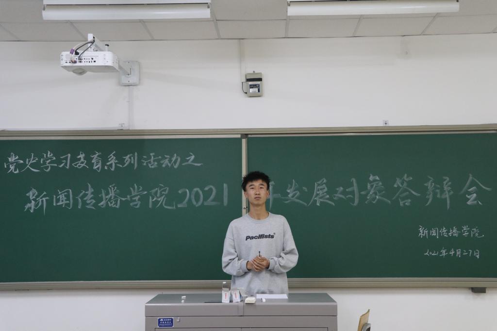 发展对象从个人情况、入党动机、取得的突出成绩及自身的缺点与不足等方面进行陈述。学生党支部评议小组就时事政治、党的理论知识等方面进行现场提问,对发展对象进行综合的考核,全面地了解发展对象在思想、学习、生活和工作中的综合表现。
