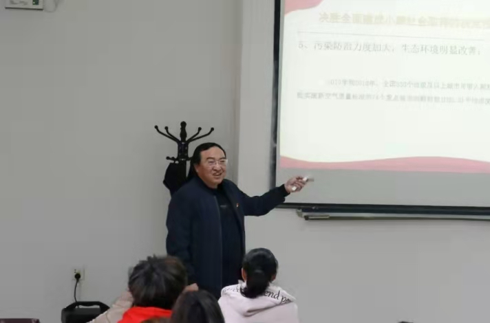 党总支书记周强主讲,学院教工、学生预备党员及第七期入党积极分子参加。