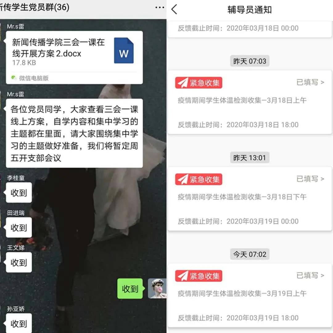 微信群里,学院书记发布通知,对疫情期间学生基本情况进行排查统计,半个小时后 ,又艾特了那位没有回复的同学。我打开表格,一一对照,如实上报身体健康状况和近期是否外出等信息。我已习惯每天睁眼第一件事,报备身体健康状况,去“今日校园”打卡,手机24小时开机,关注群消息。
