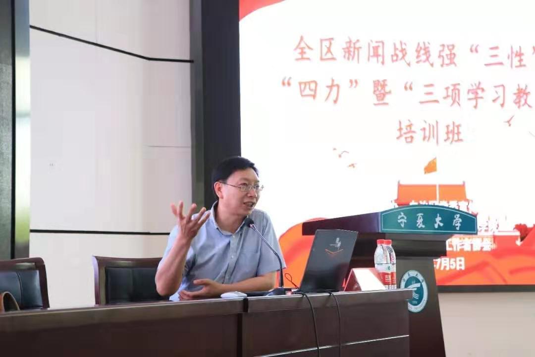 文荟楼一楼东报告厅举办全区新闻战线强“三性”增“四力”暨“三项学习教育”培训班第四期活动,本期培训活动由电影先生