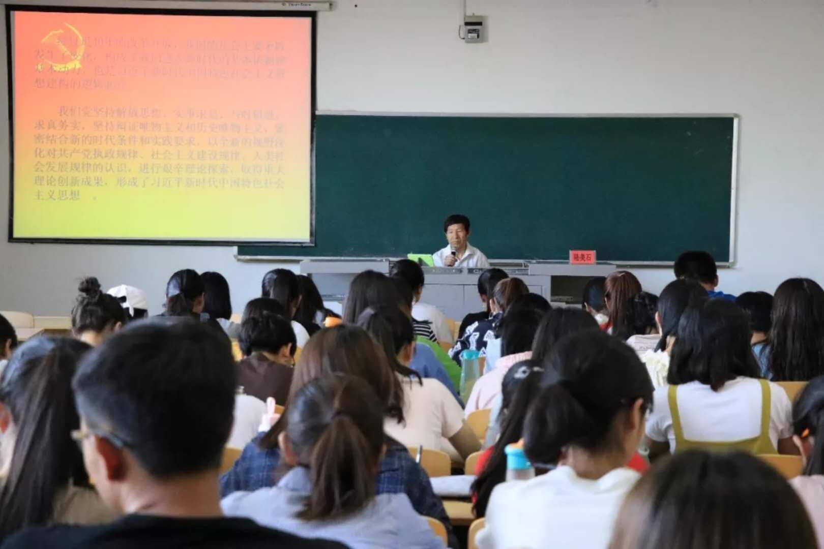 邀请我校关工委“五老”报告团成员陆美石到文荟楼207教室开展主题为“解读习近平新时代中国特色社会主义思想”的讲座。