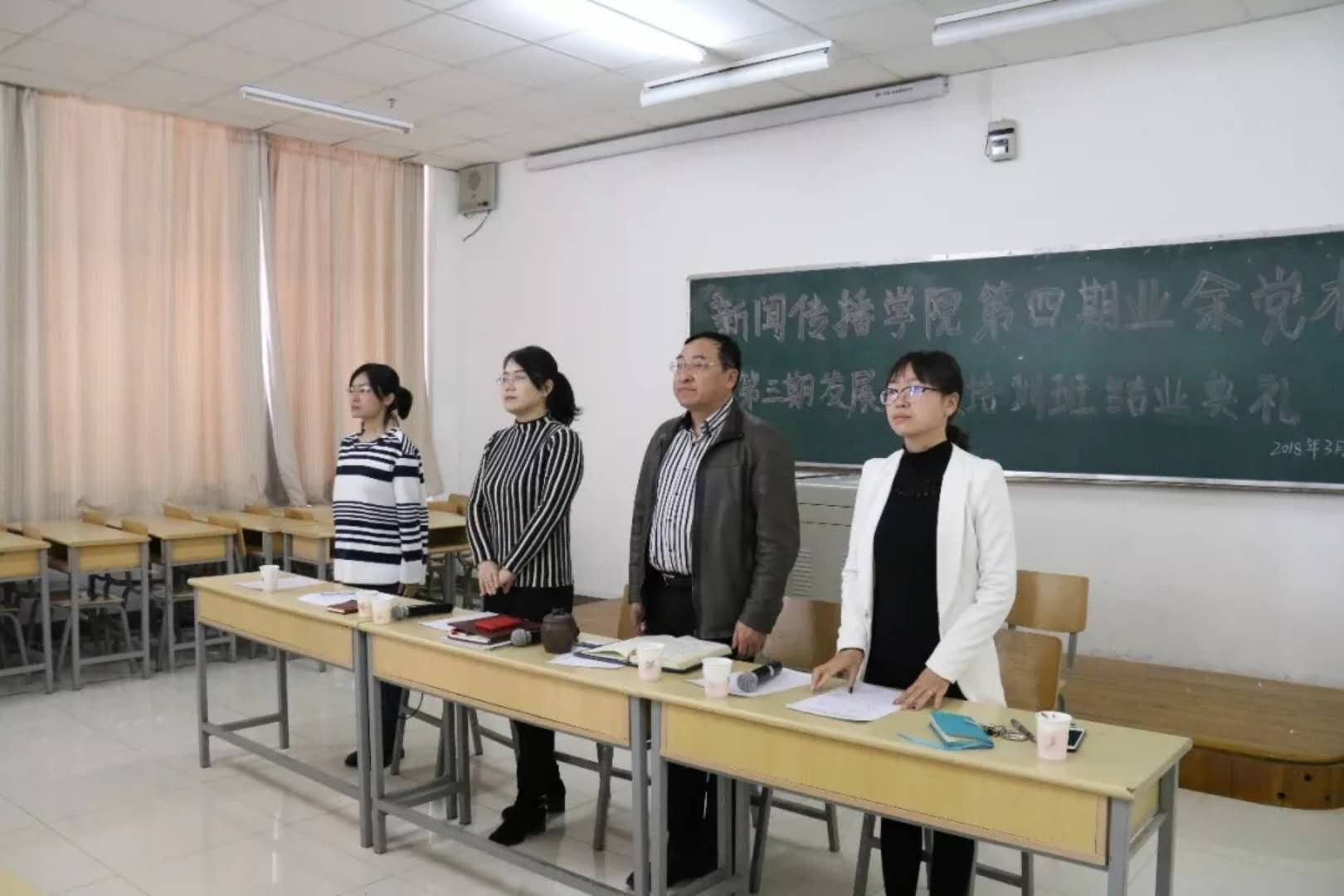 第三期入党发展对象以及全体入党积极分子在文荟楼418教室参加了第四期业余党校暨第三期发展对象培训结业典礼。学院党总支书记周强、党总支副书记马骏、学生工作办公室主任李瑾参加会议。辅导员雷丽霞主持本次会议。