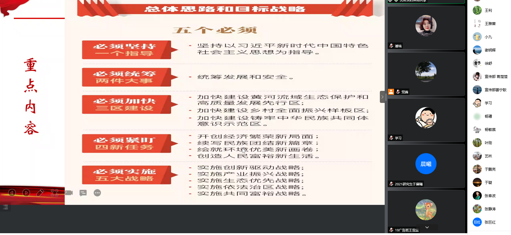 潘瑞在总结讲话中指出,希望全院师生要充分认识自治区第十三次党代会的重大意义,深刻领会党代会确立的新目标、提出的新任务新要求,使学习党代会精神的过程成为深化认识、完善思路、强化措施的过程,为全面建设社会主义现代化美丽新宁夏贡献高校力量。