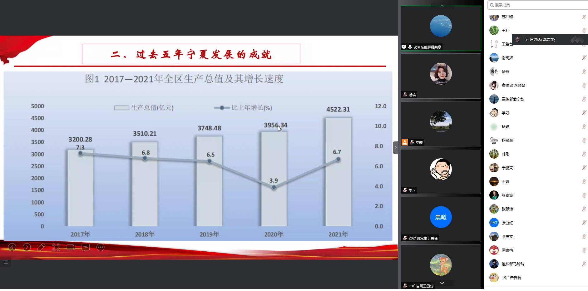 沈岩东深入浅出地梳理了自治区第十三次党代会的主题、过去五年宁夏发展取得的重大成就、今后五年的总体要求和总体部署、推动高质量发展实现新突破的重点工作、保持社会和谐稳定的主要任务和推进全面从严治党的部署要求。报告主题鲜明、内容丰富、重点突出、层次清晰,为师生深入学习宣传贯彻党代会精神廓清迷雾,厘清思路。