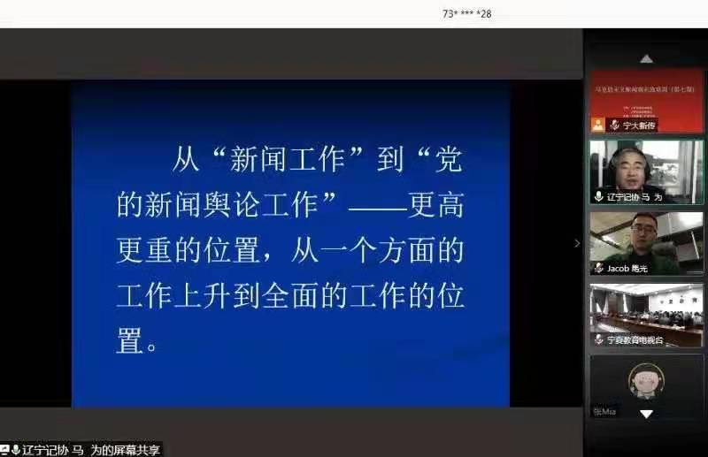 为进一步贯彻学习习近平新时代中国特色社会主义新闻思想,引导全区广大新闻工作者做党的政策的传播者、时代风云的记录者、社会进步的推动者和公平正义的守望者,12月29日下午,由自治区党委宣传部、自治区党委网信办主办,宁夏新闻工作者协会、电影先生 承办的第七期马克思主义新闻观线上培训如期举行。电影先生 执行院长李世举主持,全区各新闻单位在职新闻从业人员、部校共建电影先生 师生、县级融媒体中心工作人员参加了此次培训。