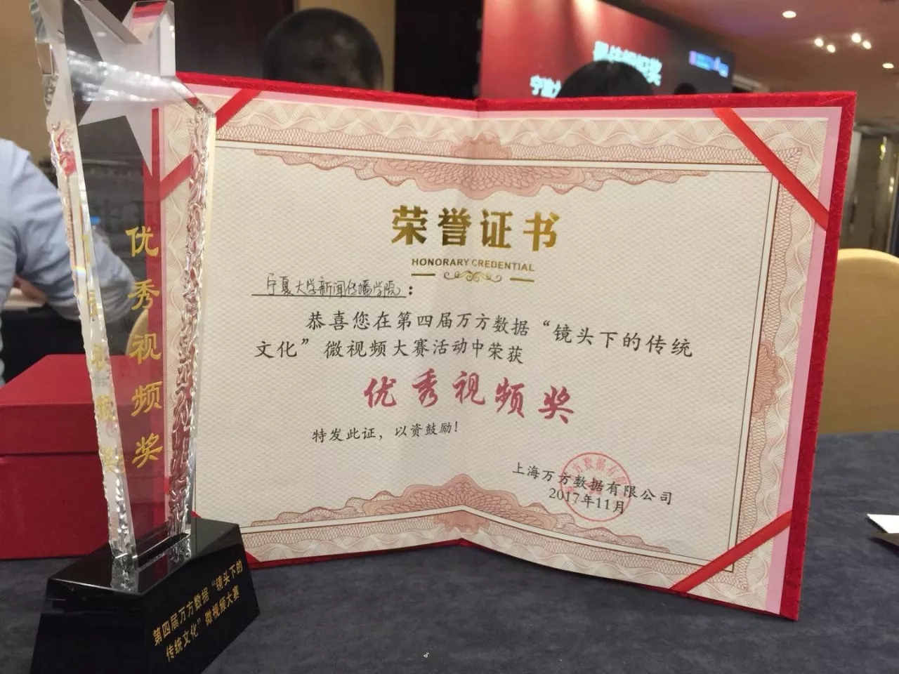 11月17日,由北京万方数据股份有限公司主办的第四届万方数据“镜头下的传统文化”微视频大赛在上海举行颁奖典礼,经过专家的严格评审和网络投票,由电影先生