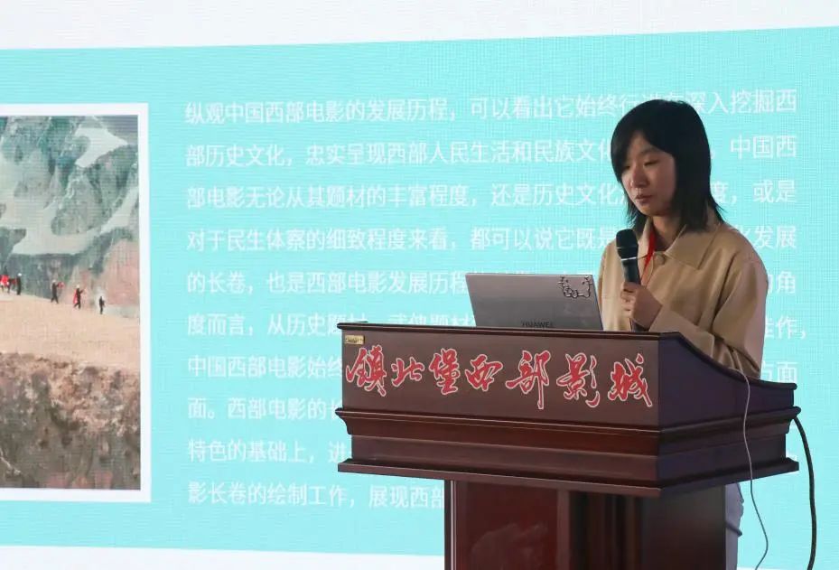 中国传媒大学李思源围绕《以光影为笔,延续西部电影文化长卷》,从现实主义与浪漫主义、人本主义与生命精神、多维文化与国际化观点、乡土气息与现代精神四个角度分析西部电影的美学精神,以及西部电影的美学发展趋势——影像色调温暖化、明亮化,文化姿态亲民化、日常化,文化内容国际化现代化。对于延续西部电影文化,要围绕色调、主角、背景、主题四个重点,展现新时代西部的积极变化与多元民族文化,同时打造西部文化IP、活用最新科技,实现新西部电影“破圈”。