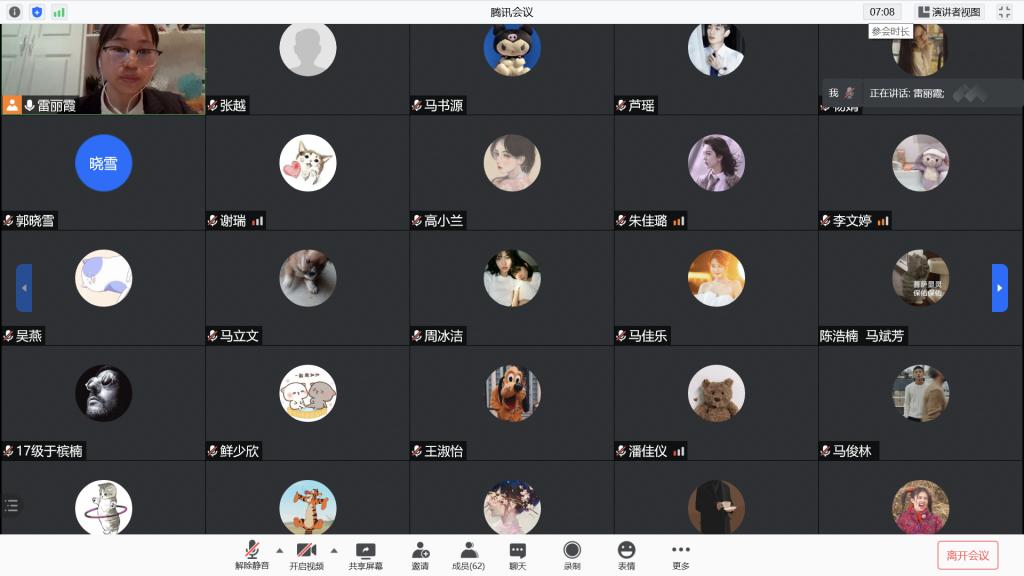 于4月29日晚举行线上会议,学生辅导员雷丽霞主讲,电影先生