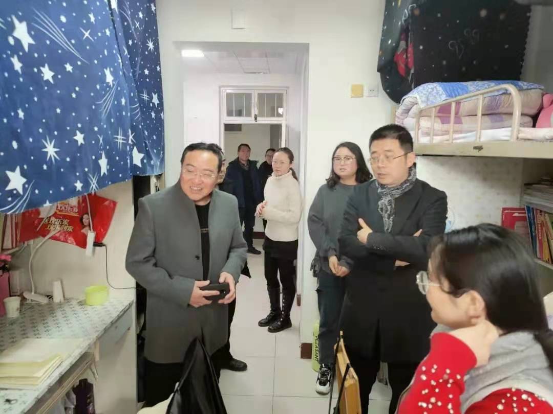 在慰问大四同学时,周书记感谢各位同学对学校、学院各项工作的支持与配合。他强调,目前疫情形势仍然需要我们提高警惕,同学们要保护好自己,绝不能松懈;同学们也要与家人保持密切联系。在宿舍里,周书记与李院长查看了同学们宿舍的卫生状况,叮嘱同学们要养成良好的生活习惯、维护好宿舍卫生,切记不可使用大功率电器;同时嘱咐同学们做好防疫措施,保证宿舍通风及个人卫生良好,有任何问题要及时联系学院老师。