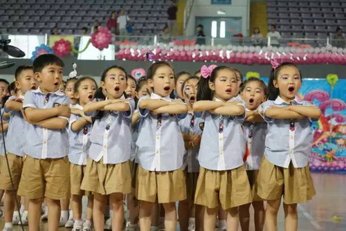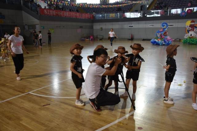 艺术操展演现场热闹非凡。身着各种各样演出服、脸上涂满油彩的小演员们在舞台上活力四射,灿烂的笑容里无不洋溢着纯真与朝气。动感十足的街舞表演《精武萌》、轮滑表演《good children》、篮球表演《旋风篮球》都妙趣横生,不时搏得观众的阵阵掌声。
