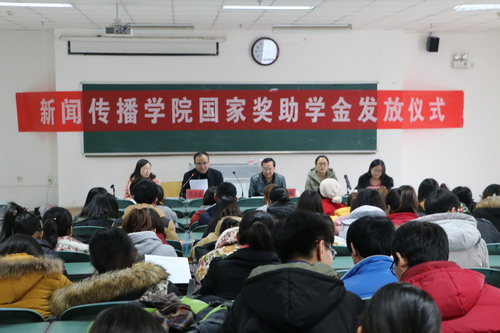 2014-2015学年国家奖助学金获奖获助学生名单,周强强调了国家奖助学金制度设立的重要意义,并对同学们寄予了殷切的期望,他希望获奖同学可以这份来之不易的荣誉,心怀感恩,肩负起责任,以实际行动报效国家,只有把感恩之情付诸行动,励志成才,磨练精神品质,加强道德修养,才能成为优秀的新闻工作者。