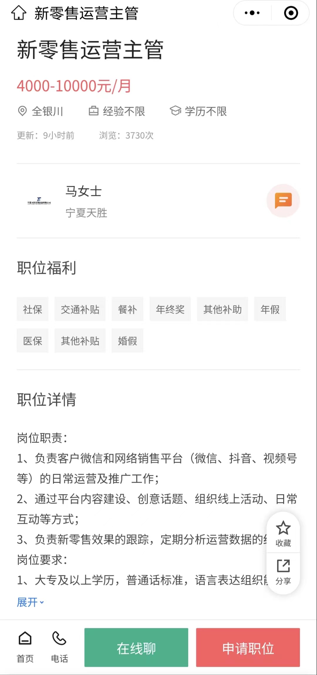 岗位:新零售运营主管
