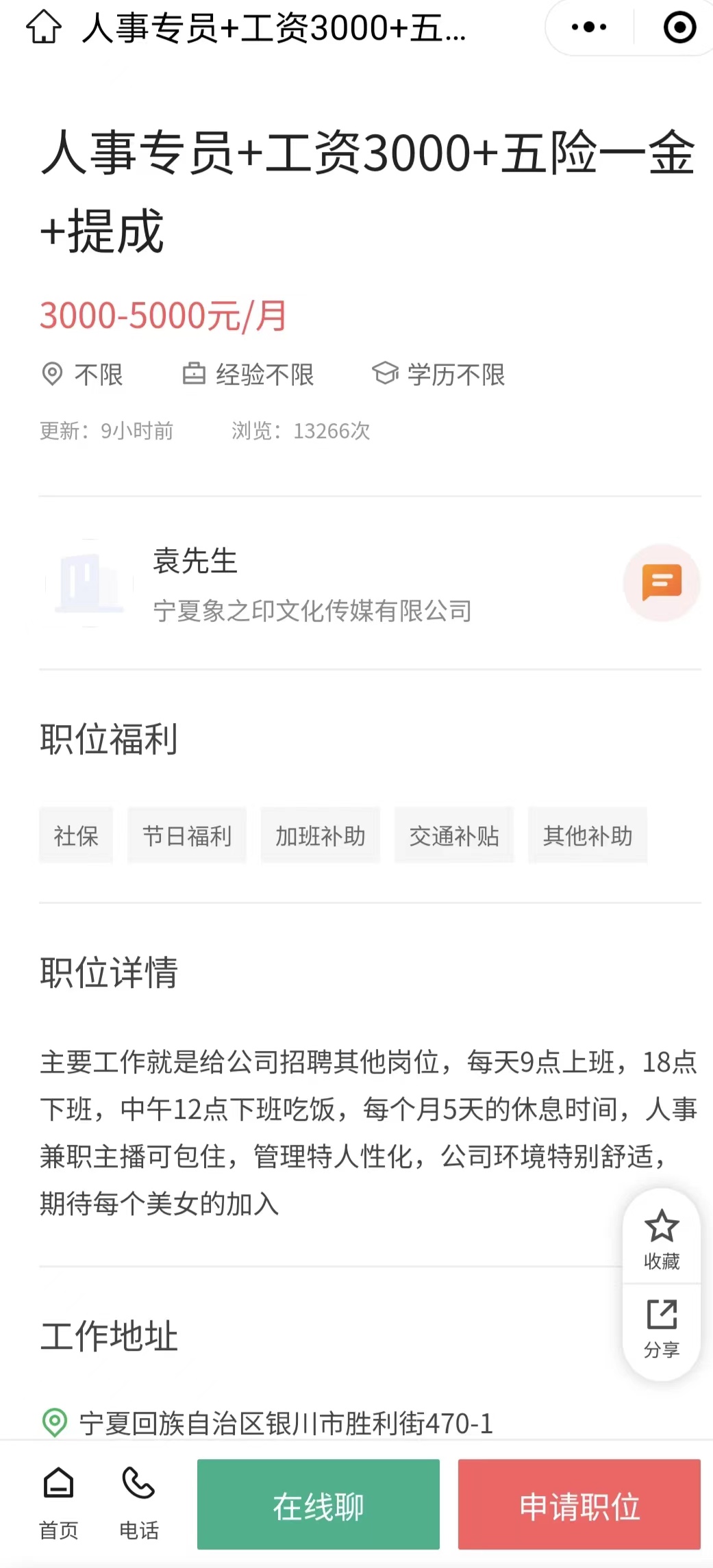 岗位:人事专员