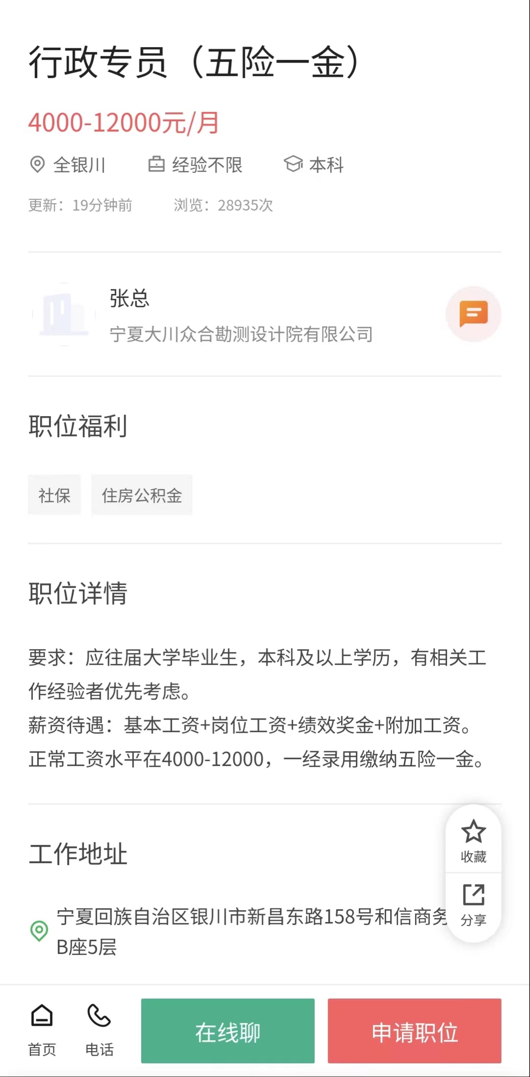 岗位:行政专员