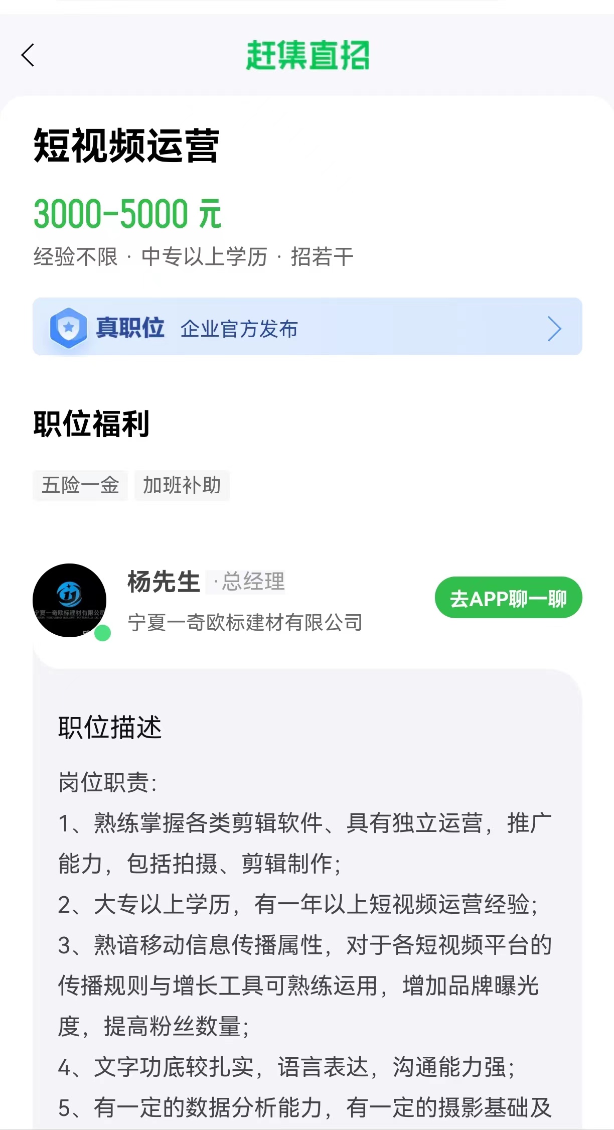 岗位:短视频运营