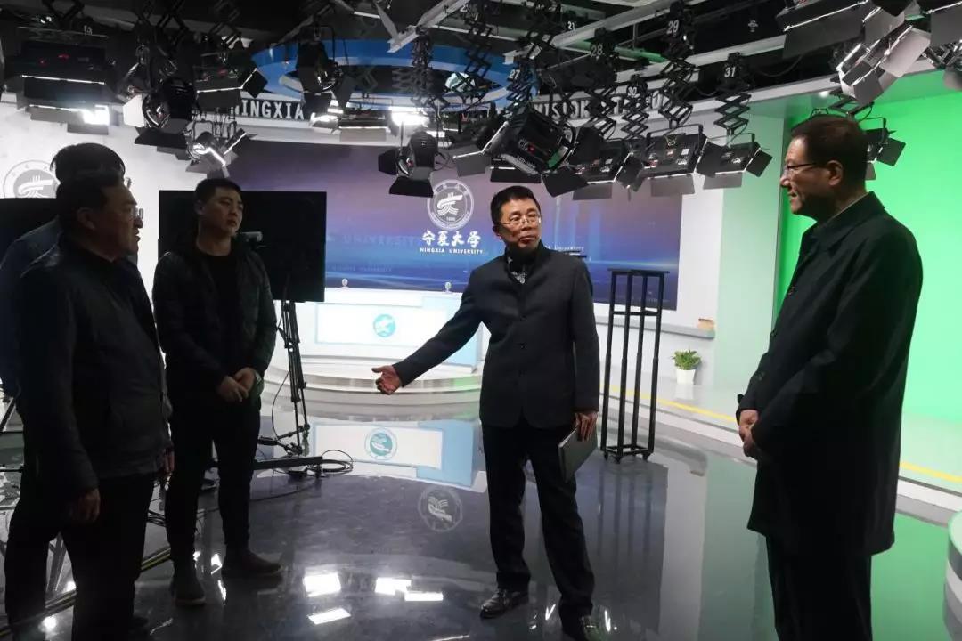就部校共建、实验室建设、学院发展等工作进行调研。王宏伟副书记现场查看了学院的专题摄影工作室、新闻演播室、融媒体实验室和综合实验室等,听取了学院领导的工作汇报,电影先生