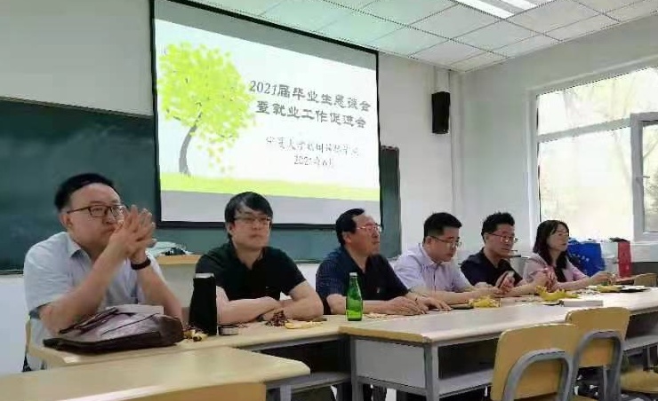 召开2021届毕业生恳谈会暨就业工作促进会,学院党总支书记周强、执行院长李世举、党总支副书记李晓珉、副院长于鹏亮、张静涛、辅导员雷丽霞及2017级在校学生参加了恳谈会。