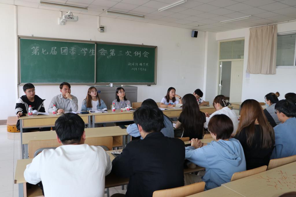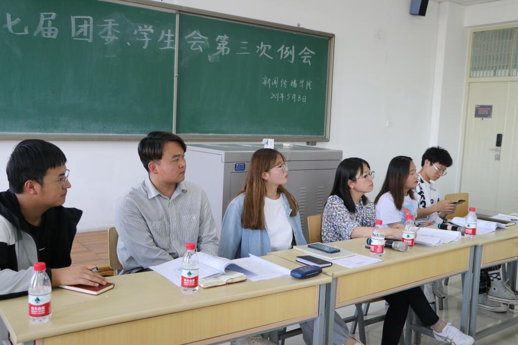 于文荟楼401室举行了第七届团委、学生会第三次例会。辅导员雷丽霞出席会议,团委、学生会全体成员参加。