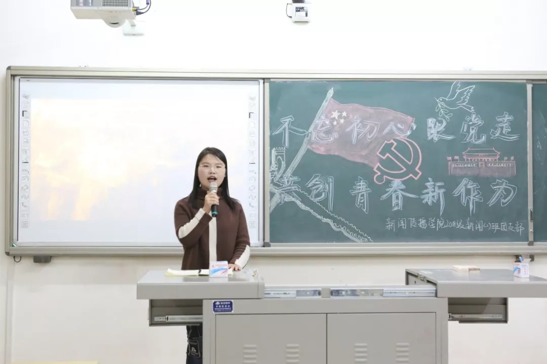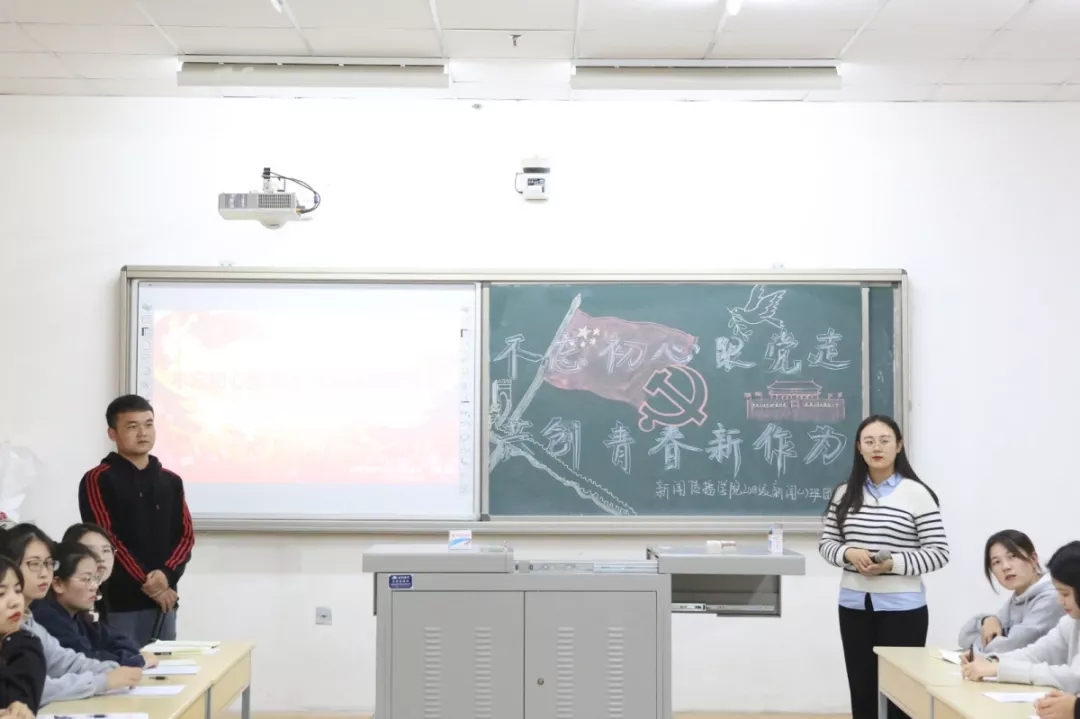 2018级新闻1班在文荟楼406教室举办了"不忘初心跟党走,共创青春新作为"的主题班会。校党委副书记王玉炯作为联系班级的校领导参加了班会,电影先生