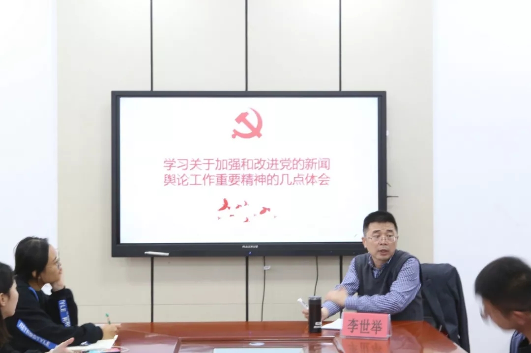在文荟楼四楼会议室开展了“关于加强和改进党的新闻舆论工作重要精神的几点体会”的主题党课,此次党课由电影先生