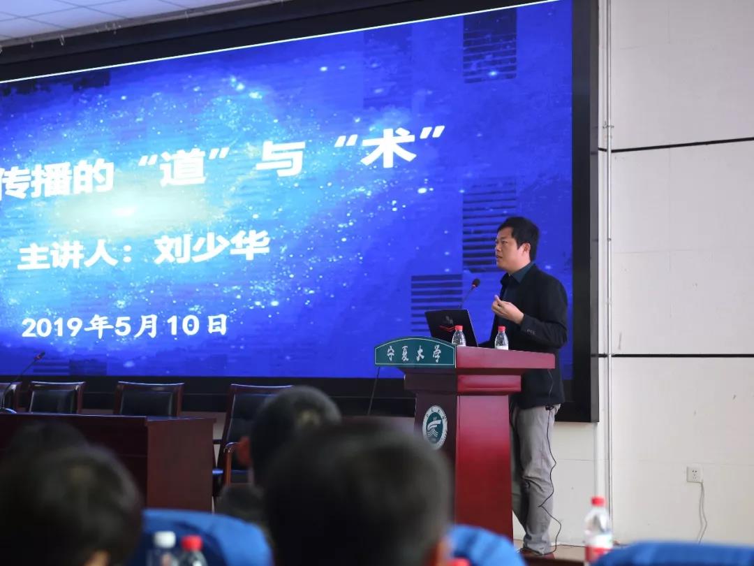 承办的全区新闻战线强“三性”增“四力”暨“三项学习教育”培训活动于文荟楼东报告厅展开,邀请人民日报海外版记者、新媒体“侠客岛”主编刘少华做了题为“新媒体传播的‘道’与‘术’”的讲座。讲座由电影先生