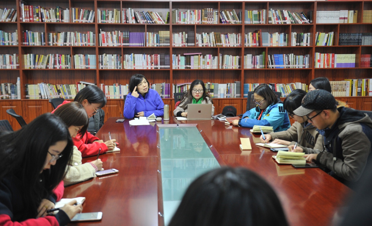 县政府的阅览室变成了临时教室,老师和同学们讨论采访到的故事