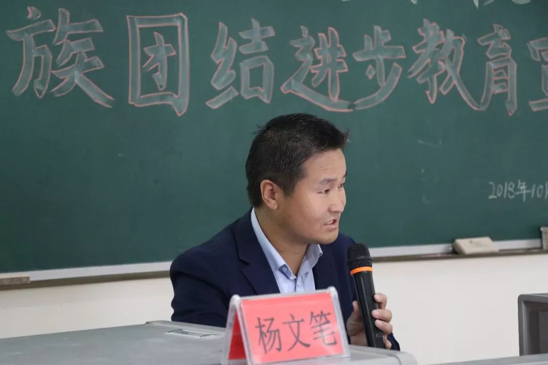 全体师生齐聚文荟楼130教室,共同聆听了由回族研究院副教授杨文笔主讲,以“牢固树立马克思主义民族观宗教观”为主题的民族团结进步教育宣讲会。活动由院党总支书记周强主持。