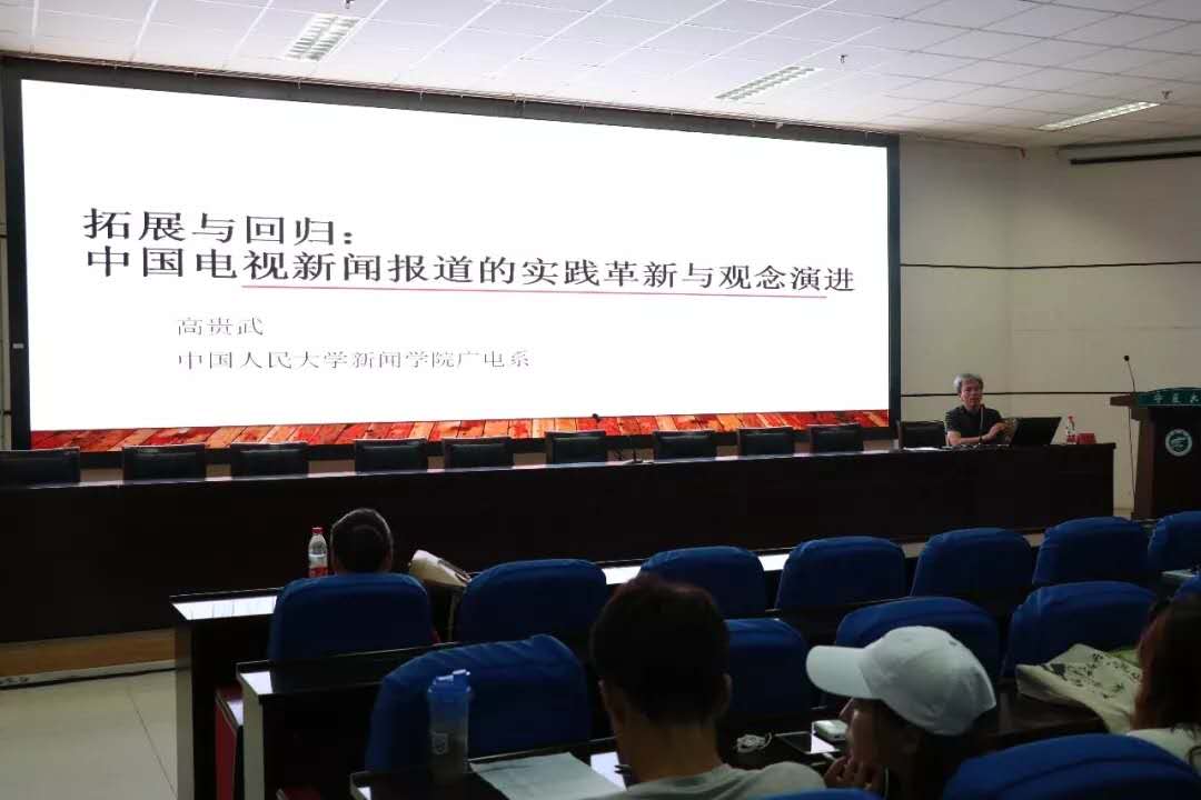 传媒大讲堂特邀中国人民大学新闻学院广播电视系主任高贵武教授在文荟楼东报告厅作学术报告。高教授以《拓展与回归:中国电视新闻报道的实践革新与观念演进》为主题,向在座的师生介绍了中国电视产业所面临的困境以及未来发展趋势。电影先生