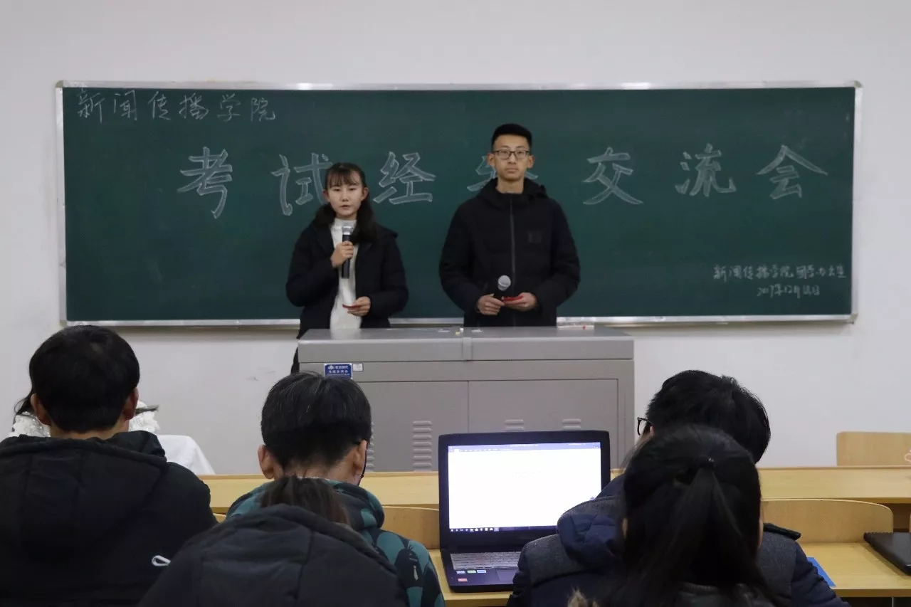 2017级全体学生在文荟楼207教室举办期末考试经验交流会,此次交流会邀请2015级、2016级优秀学生代表参加。