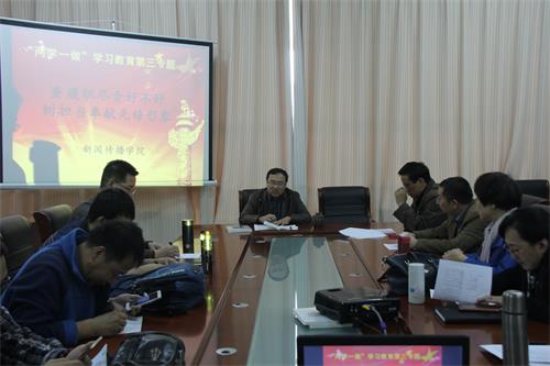 在文科楼四楼会议室组织开展“两学一做”学习教育第三专题学习研讨会,会议由学院书记、常务副院长周强主持,学院全体教师参加。
