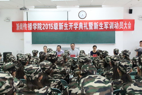 2015级新生开学典礼暨新生军训动员大会在文科楼324教室隆重召开,电影先生