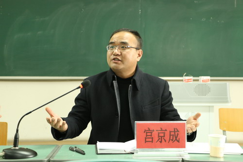 会上,宫京成首先对毕业实习作了具体的安排,包括实习单位、实习时间及实习指导老师等情况,随后又提出了一些关于实习期间的注意事项,讲解了实习手册填写要求,并鼓励同学们在实习期间要好好表现,加强实践锻炼能力,在实习中努力提高自己,为以后的就业做好全面准备。