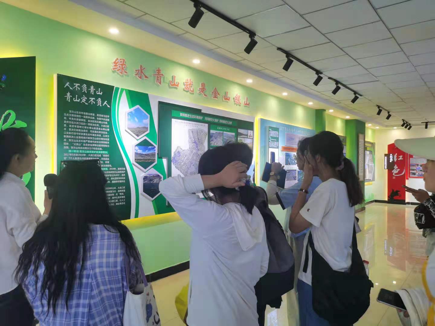 下午,实训小组来到有着“贺兰山下第一村”之称的龙泉村继续调研。村书记带领大家来到村史馆,介绍了龙泉村发展的基本历程,讲解了“乡村振兴”、“产业转型”的故事。龙泉村利用自身富有故事性的传说和九口泉,将旅游业很好地结合起来,带领全村人民致富,并形成了良好的村风村俗,是乡村发展值得借鉴学习的典型例子。