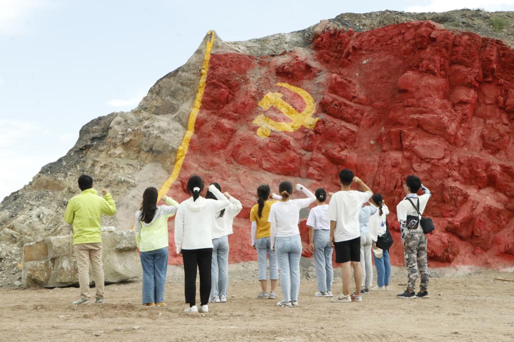 今天我们和贺兰山2组一起行动,来到了石嘴山市大武口区石炭井,依次前往大磴沟、石炭井工业文旅小镇和参观贺兰山治理情况。石炭井街道办事处杨官梅为我们介绍了贺兰山生态环境的整治修复和石炭井工人居住城镇的文旅改造成果。