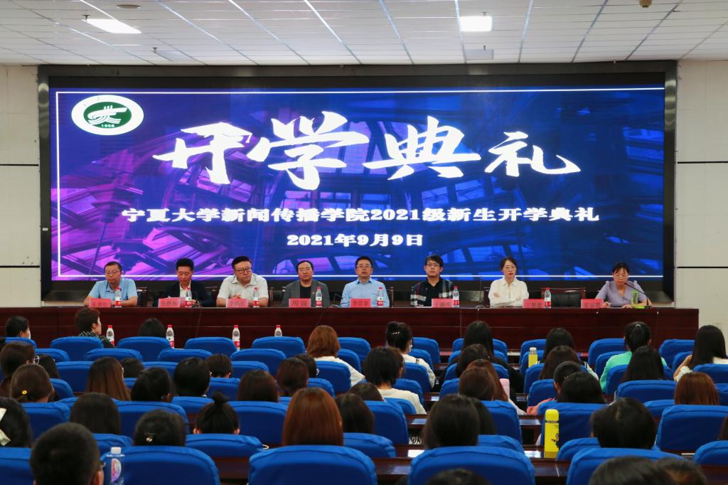 2021级新生开学典礼在文荟楼东报告厅举行,典礼采用线上线下相结合的方式进行,于微信视频号全程直播,邀请2021级新生家长观看。学院党总支书记周强,执行院长李世举、党总支副书记李晓珉、副院长于鹏亮、张静涛、新闻系主任王雅蕾、广告系主任朱俊松、学生辅导员杜玥及部分教师代表应邀参会。典礼由学生办公室主任雷丽霞主持,2021级全体同学参加。