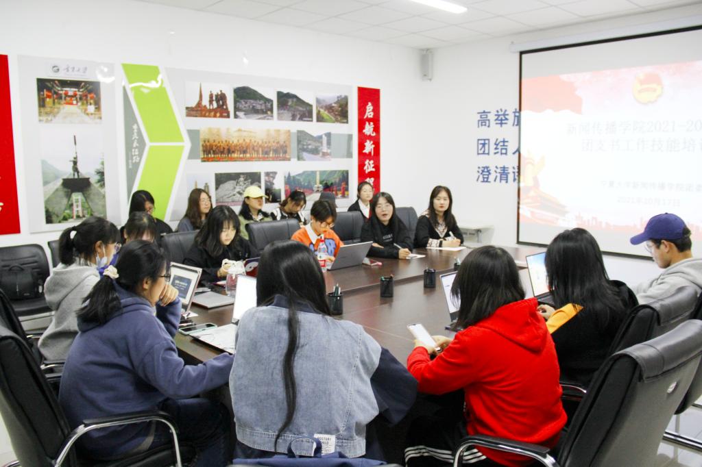 各班团支书和组织部全体成员,于文荟楼706参加2021年至2022年度第一次团委支部工作技能培训。