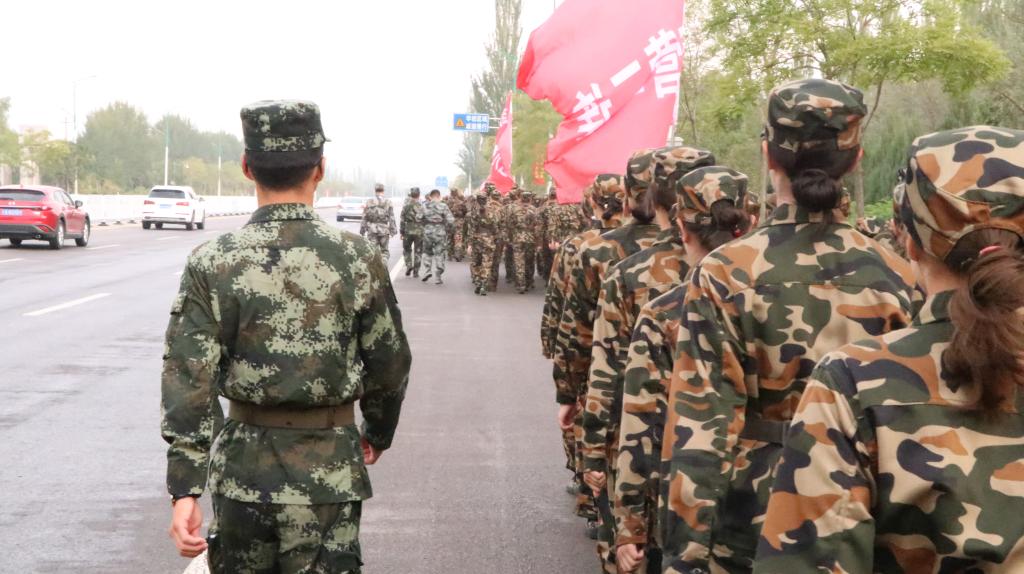 拉练是锻炼我们意志力的有效手段,校外拉练更是对人意志的一种磨练,是增强大家体质一种训练。拉练路上充满了不确定因素,川流不息的车流,荒芜的道路,拉练过程中教官们设置的障碍,早晨凉意浓重的秋风,逐渐高升的烈日,无一不是我们完成拉练任务的障碍。漫漫行军路上,同学们头上一颗颗汗滴在阳光下折射出坚毅的光彩,一步步步伐迈出了坚定的态度,一声声口号喊出了心中的志气。