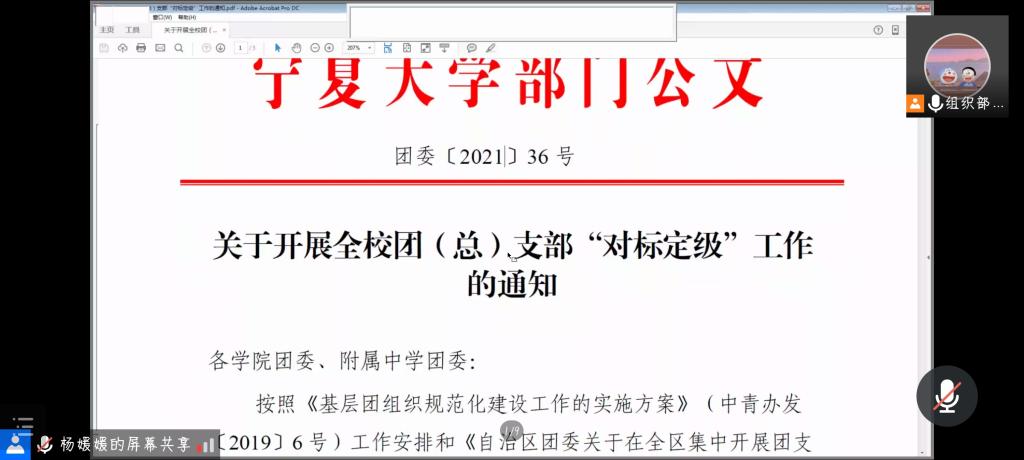 各级团支部工作人员集中学习团支部《“对标定级”评定标准》。第八届团委副书记杨媛媛主持本次会议。