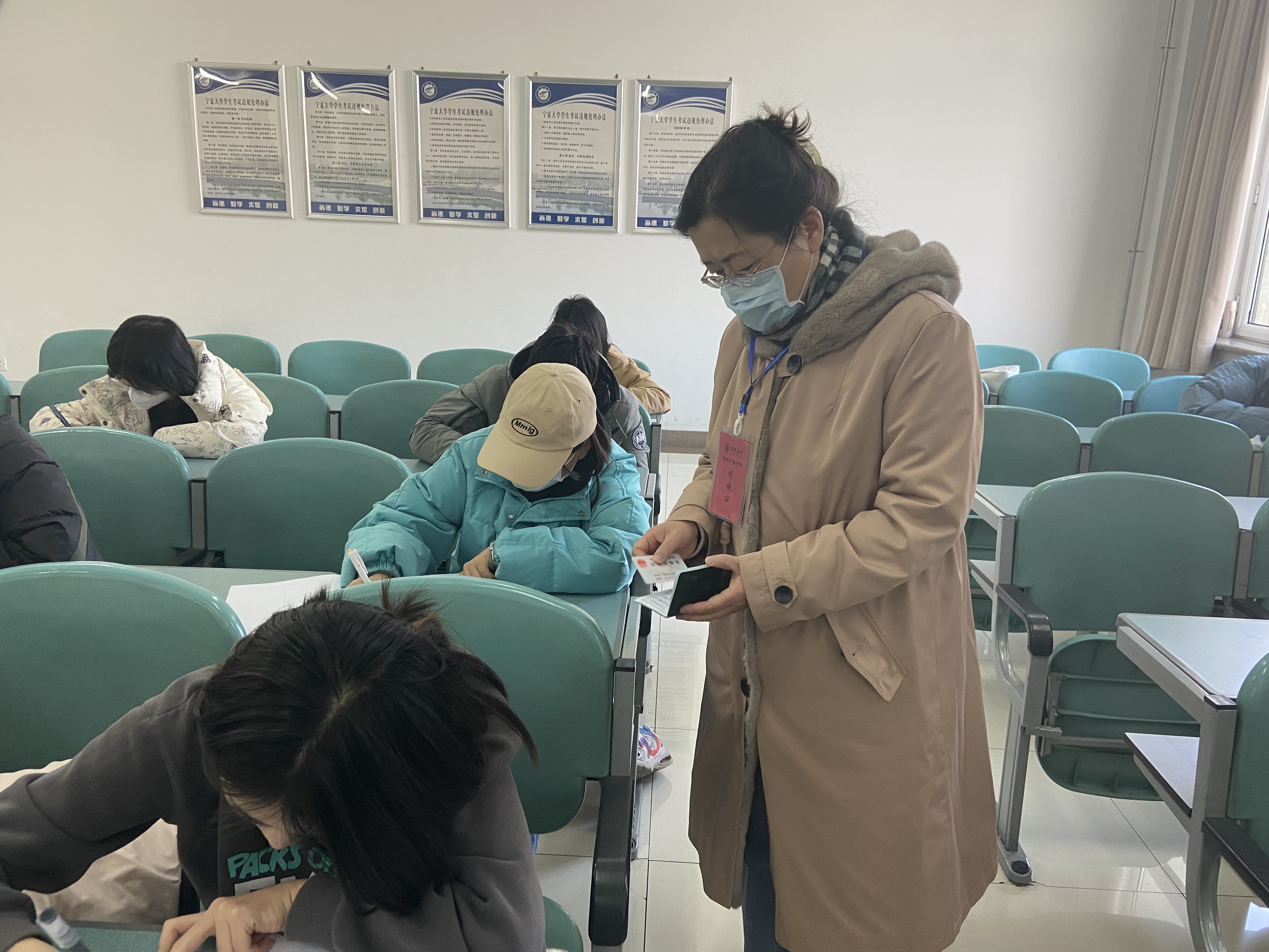 于12月27日开始2021—2022学年第一学期专业课期末闭卷考试。为加强考试组织管理,强化考风建设、严明考试纪律,学院党总支书记潘瑞、执行院长李世举、学院教学督导于鹏亮、谢明辉及教科办教师雷双军进入考场开展检查巡视。