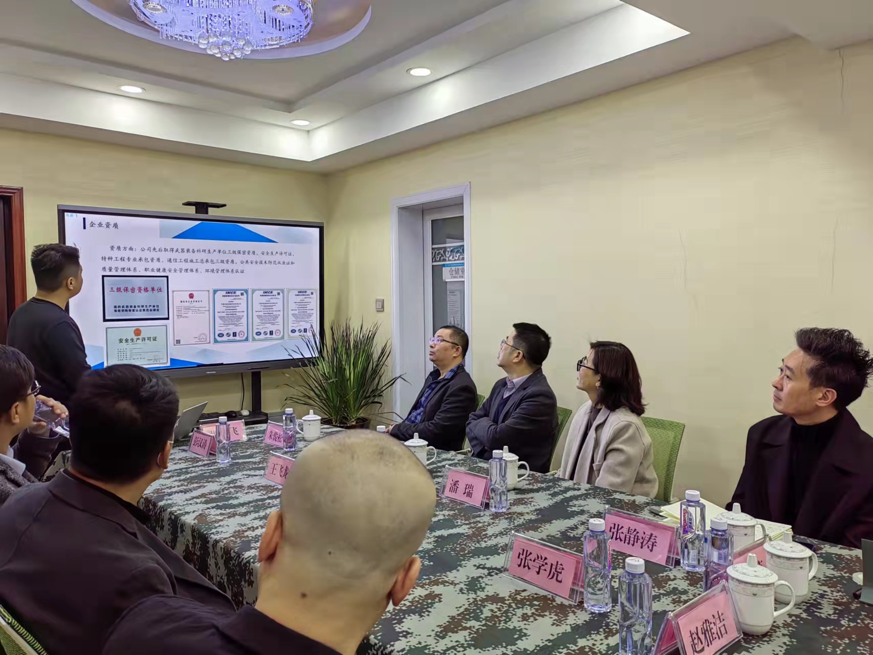 张宴飞介绍了公司基本情况,就业务展示、成果转化、研发领域、产品演示、知识产权、多媒体指挥调度系统等情况进行了说明,双方就如何发挥各自资源,在未来合作方向、合作内容、技术支撑、合作项目等方面展开讨论。李世举表示,双方在AR、VR项目的研发、虚拟模拟仿真场景产品的开发等方面可以深度合作。学院发挥项目内容优势,企业发挥技术支撑优势。