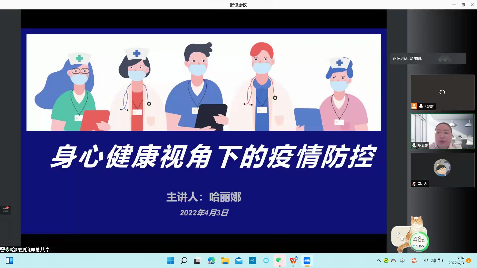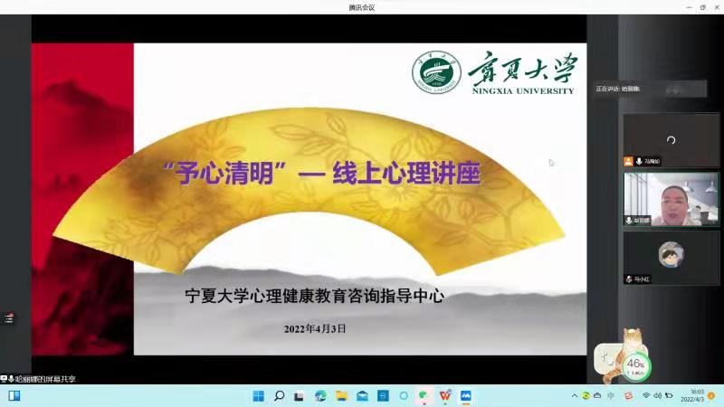 与教育学院共同参加“予心清明——身心健康下的疫情防控”线上会议。会议邀请宁夏医科大学教师哈利娜为同学们讲授疫情防控下的身心健康。