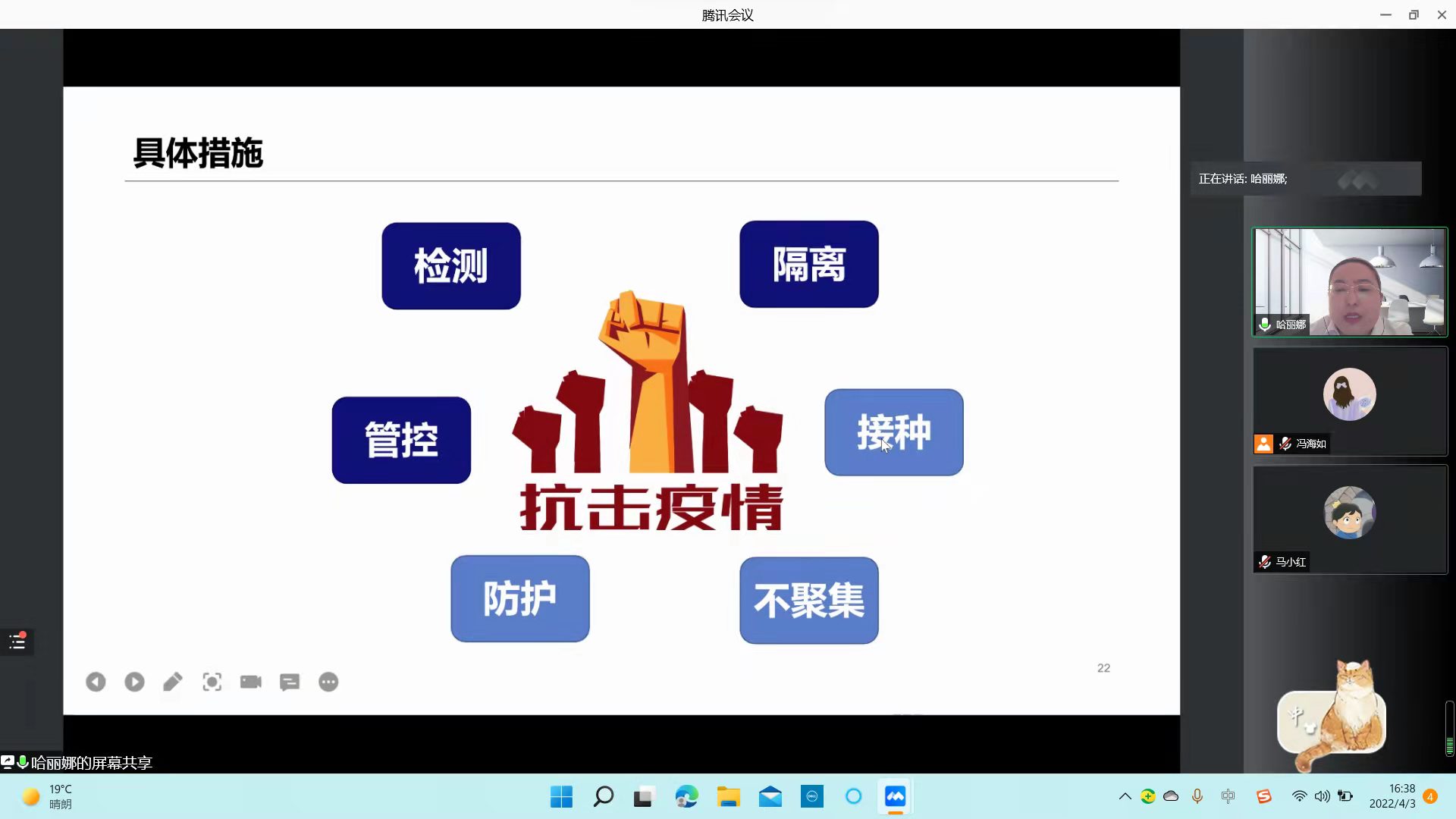 本次会议围绕大学生疫情下的常见问题及应对方法展开,引导学生关注心理健康,积极进行自我心理调节,帮助学生降低疫情对心理的影响,学会缓解心理压力,以更加积极、乐观的心态面对疫情。面对新冠疫情,让我们保持良好的心态,培养积极的正面情绪,共克时艰,等待春暖花开!
