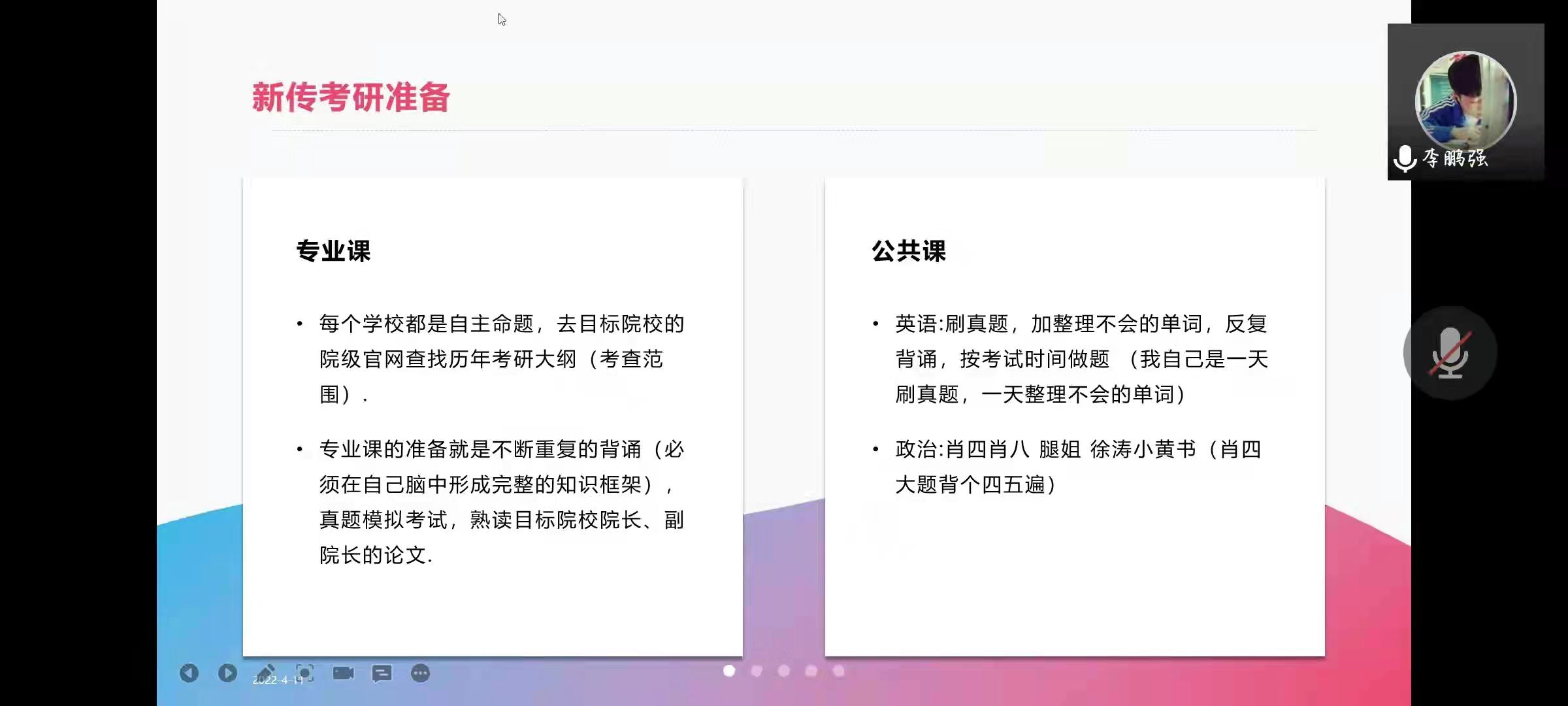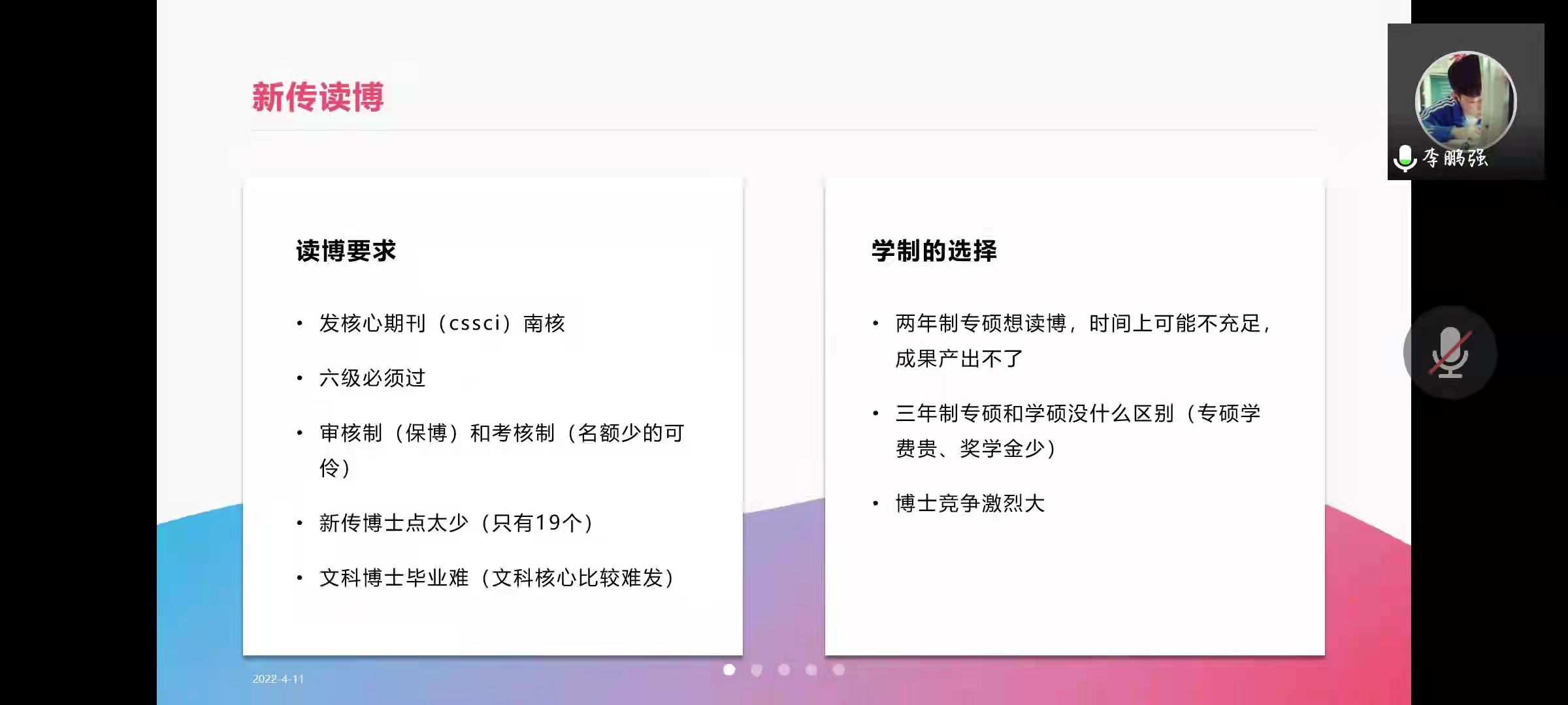 通过线上会议形式开展了以“新传考研及调剂简介”为主题的考研经验分享讲座。讲座由研会青年发展研究中心在读研究生刘红彬同学主持,李鹏强同学主讲,电影先生