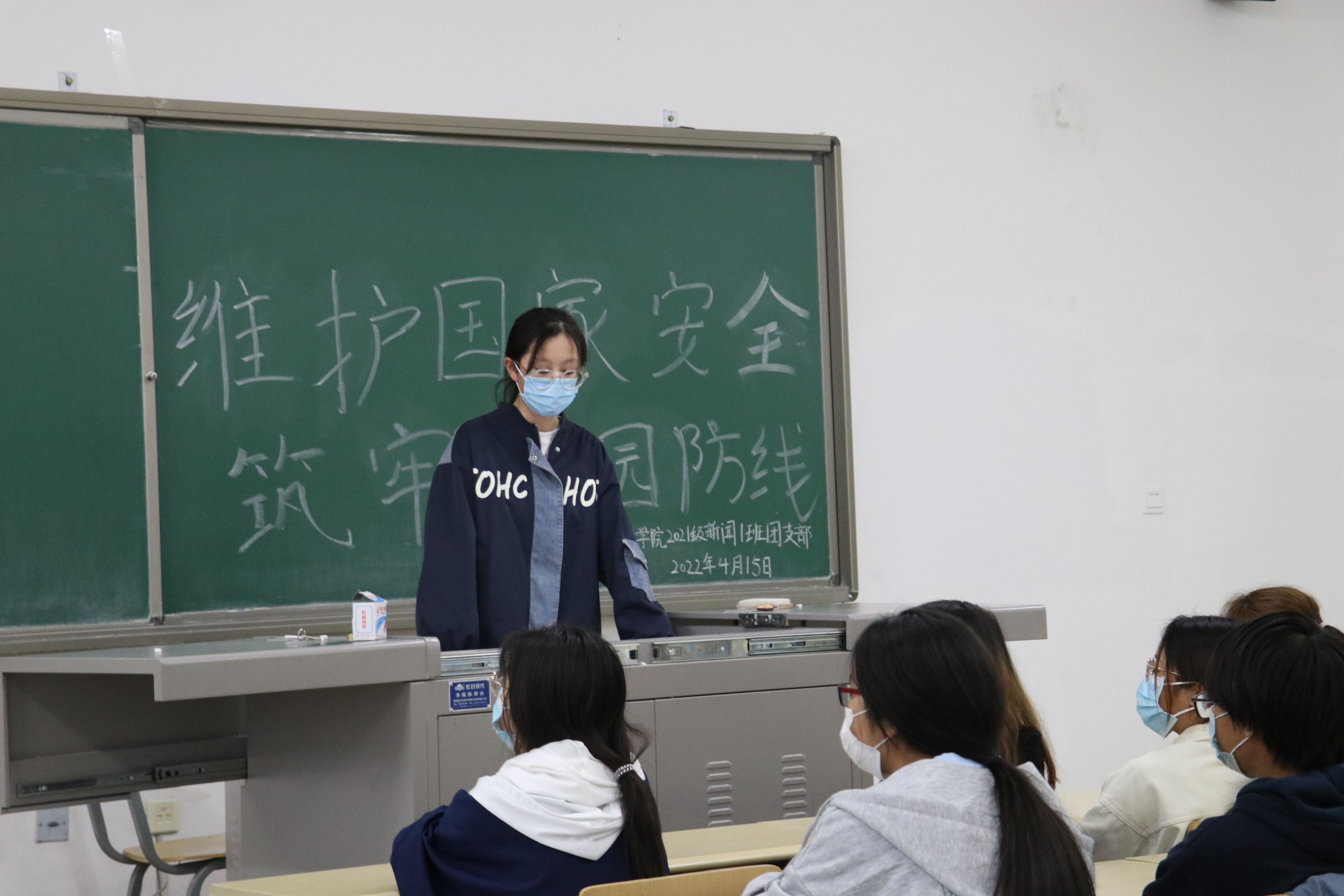 于4月15日于文荟楼四楼举行主题为“维护国家安全,筑牢校园防线”的团日活动,2021级全体同学参加。
