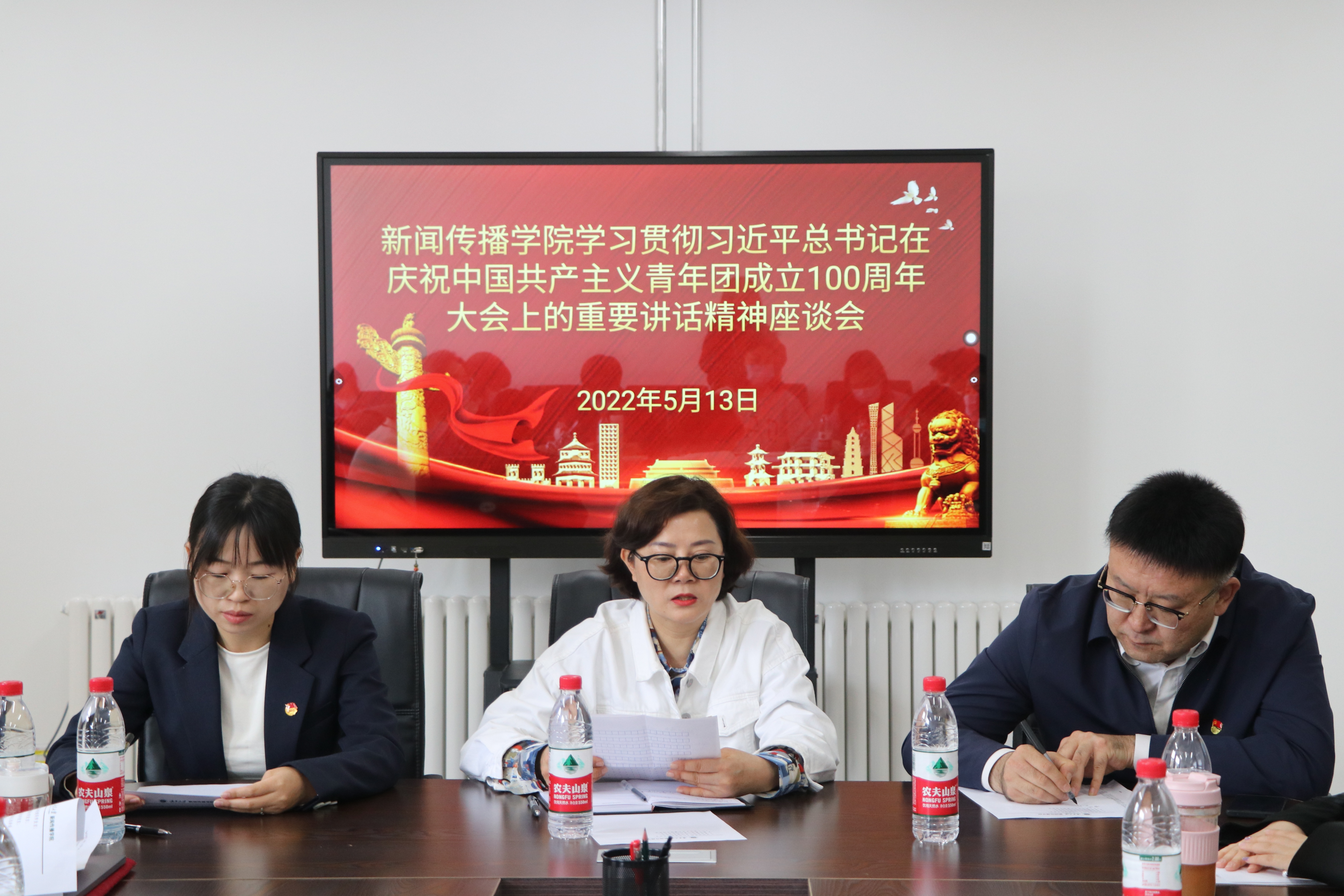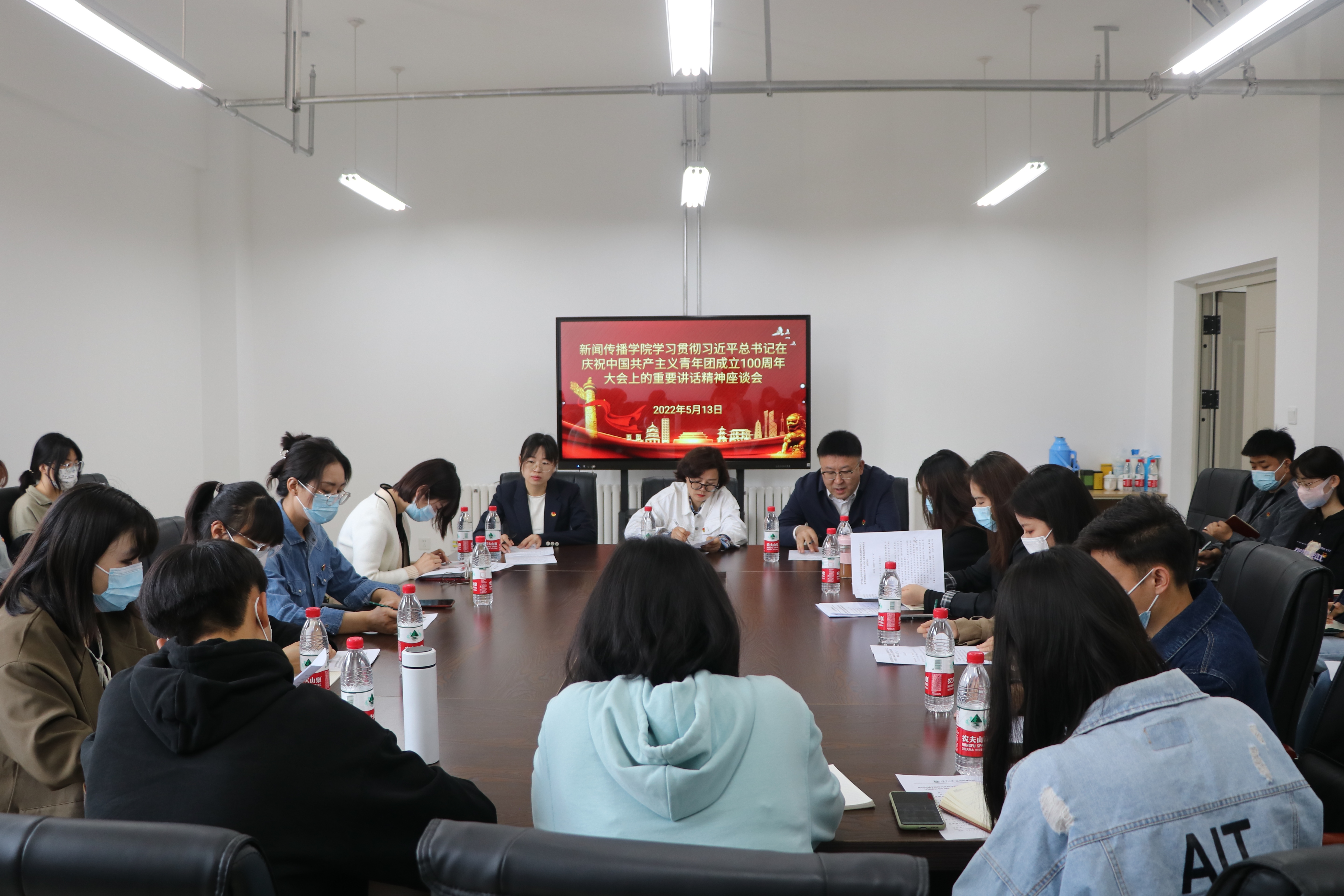 召开学习贯彻习近平总书记在庆祝中国共产主义青年团成立100周年大会上的重要讲话精神座谈会。学院党总支书记潘瑞、副书记李晓珉出席,学院团学组织、青年教师代表参加。会议由学院团委书记雷丽霞主持。