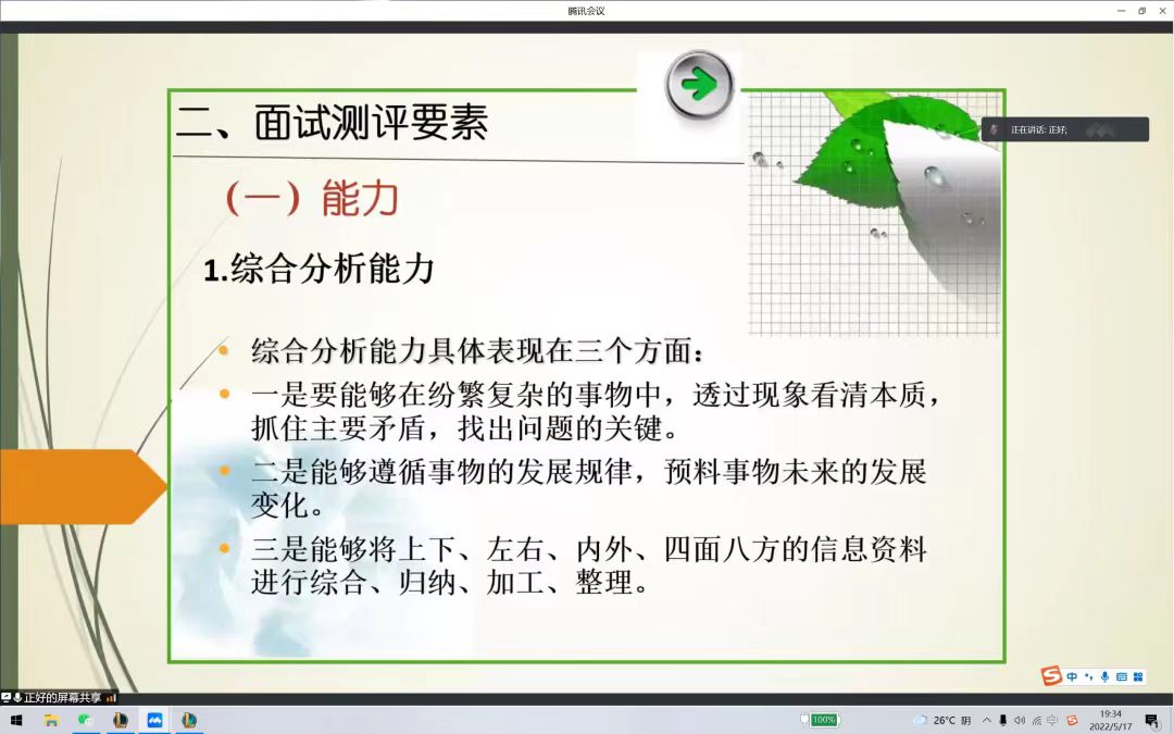 会议最后,曲正说道:“公招考试的面试更多的是‘自我展示’,将自己的能力与素质全面地呈现给考官,技巧是内化于心,外化于行。”本次讲座圆满结束,曲正在本次讲座中结合真实案例,为备考的同学们详细讲解了如何备考公招考试的面试,干货满满,内容全面。