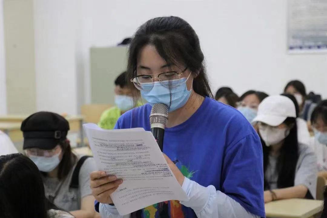 学院团委副书记杨媛媛、学生会执行主席何小倩分别领学习近平总书记在庆祝中国共产主义青年团成立100周年大会上的重要讲话精神以及习近平总书记在中国人民大学考察时的重要讲话精神。领学人强调,团委、学生会干部要积极响应党的号召,成长为有理想、敢担当、能吃苦、肯奋斗的新时代好青年,用青春的能动力和创造力激荡起民族复兴的澎湃春潮,以实际行动迎接党的二十大的胜利召开。