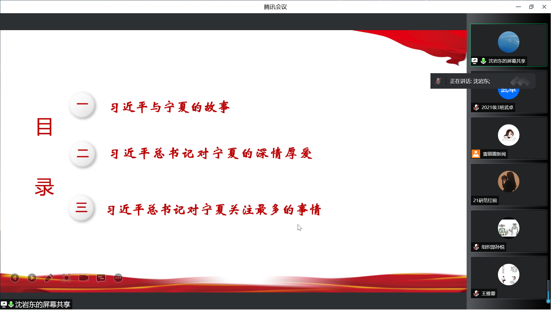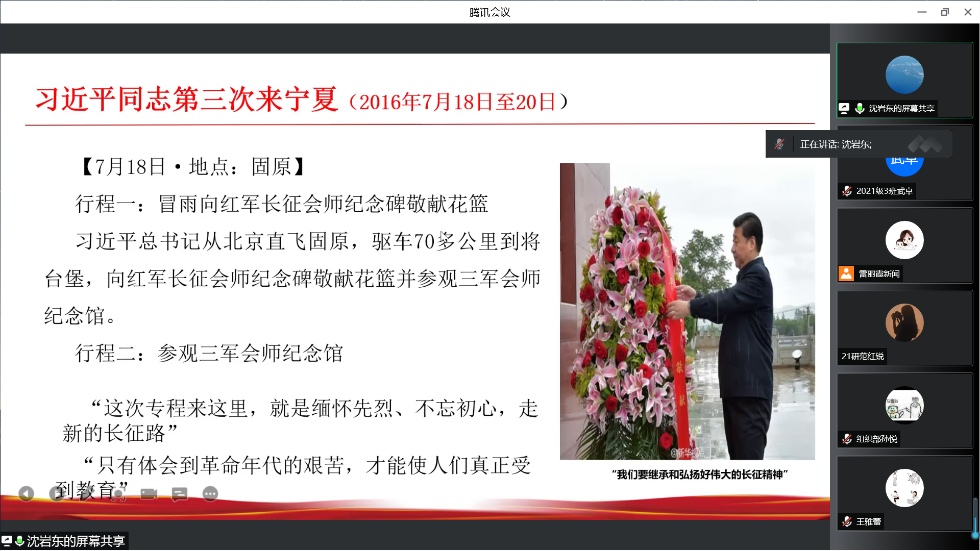 沈岩东从习近平与宁夏的故事、习近平总书记对宁夏的深情厚爱、习近平同志对宁夏关注最多的事情三个方面进行宣讲。
