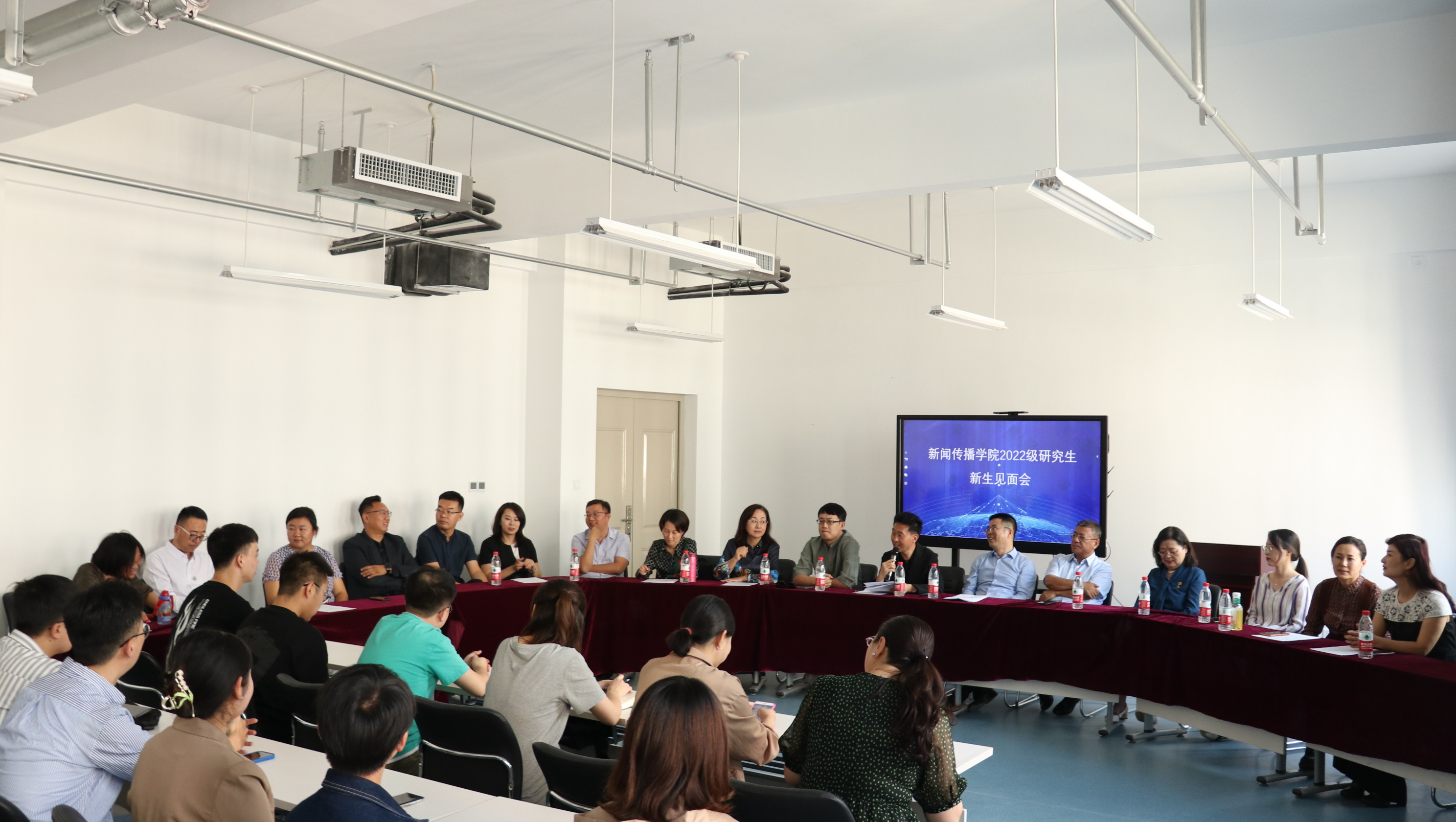于新传实验大楼N201室举办了2022级研究生与导师见面会,学院领导班子成员、研究生导师、新生班主任及全体2022级研究生参加了活动,见面会由张静涛副院长主持。